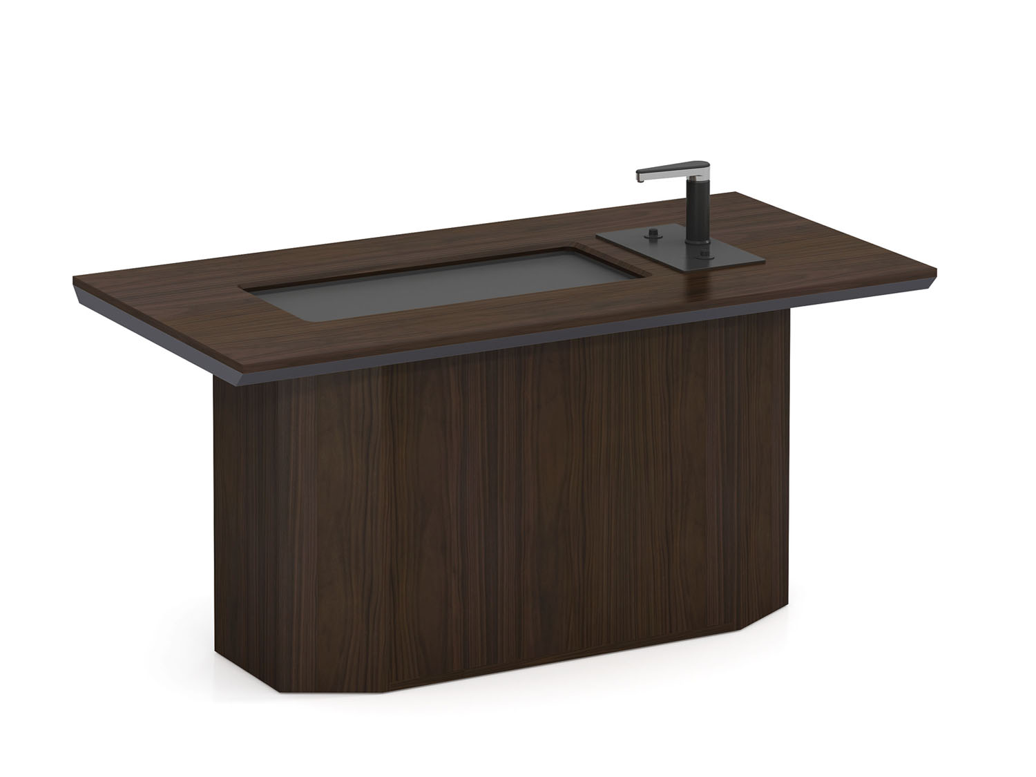 1.工藝:見光面采用E0級中密度纖維板+0.6mm天然木皮做水性漆,非見光面采用E0級刨花板貼三聚氰胺飾面; 2.封邊:見光面天然木皮封邊,非見光面采用優質PVC封邊; 3.配件:“BIM”牌 緩沖門鉸+內嵌式高端烏金石茶臺+高端智能茶具(304#食用級不銹鋼);